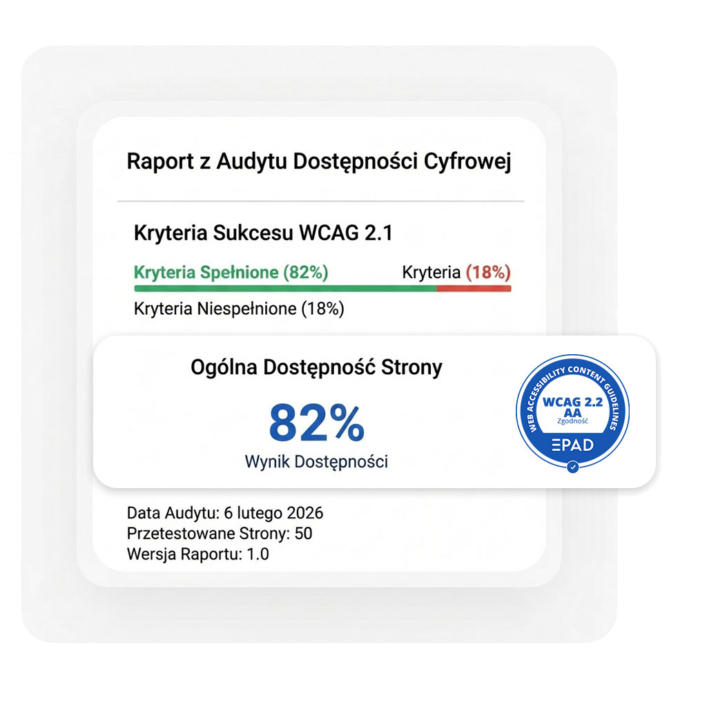 Zadbaj o zgodność z prawem, uniknij wykluczenia i otwórz swoją platformę na wszystkich użytkowników. Profesjonalny audyt WCAG dostępności cyfrowej z Certyfikatem Dostępności.